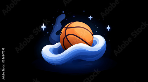 basketball, blue, glowing, magic, fantasy, sport, game, night, star, wave, abstract, illustration, design, digital artwork, artwork, energy, power, icon, symbol, element, vector, graphic, modern, cool, creative, high-coloured, bright