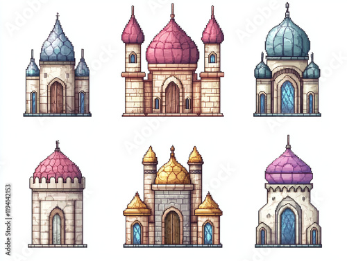 pixel, building, architecture, mediaeval, castle, ancient, fantasy, illustration, art, design, game, asset, graphic, digital, style, pixelated, collection, set, colours, creative, unique, modern, traditional, element, variety, aesthetic, detailed, high, quality, graphic, building, structure, concept, detail, texture
