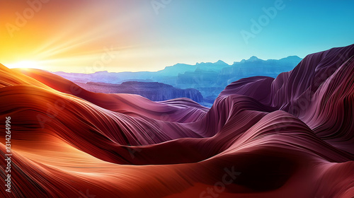 mountain, landscape, nature, desert, vale, canyon, sunrise, sunset, sun, light, sky, cloud, rock, stone, geology, arid, barren, remote, wilderness, scenic, beautiful, colourful, vibrant, texture, pattern, abstract, digital, pixel, illustration, art, design, background, wallpaper, graphic, orange, red, purple, blue, gradient, shadow, highlight, contrast, morning, evening, horizon, panorama