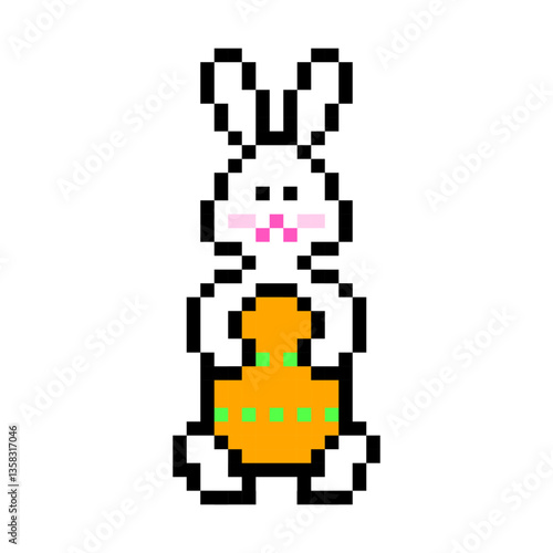 Pixel bunny icon. Easter egg character. Retro pixelated design. Cute digital art.