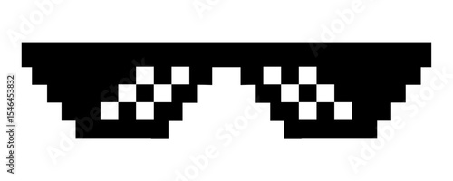 Pixelated Glasses: Minimalist digital illustration of pixelated sunglasses, embodying a retro aesthetic. A bold statement piece of style and personality.