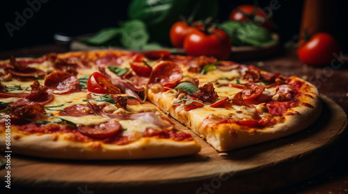 pizza, food, meal, dinner, tasty, slice, lunch, baked, pepperoni, cheese, tomatoes, snack, meat, menu, receipe, closeup, deliciously, lighting, design, eatery, fast, delicious, hot, homemade, authentic, dramatic, kitchen, cooking, fat
