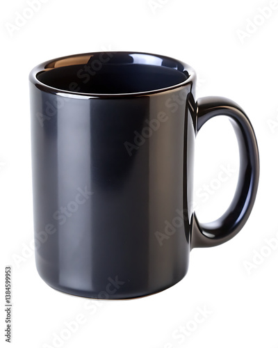 Plain black ceramic mug isolated on white, ideal for mockup, branding or morning coffee concepts.