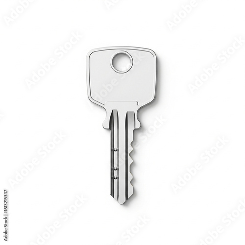 plain silver key isolated on white background suitable for real estate homeownership and office access designs