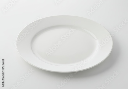 Plain white oval plate on a white surface with soft lighting and subtle shadows