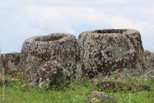 stone, rock, sky, ancient, landscape, grass, nature, travel, historical building, castle, old, europa, history, ruin, tree, rock, hill, landmark, stone, wall, mountain, architecture, green, dolmen, field, laos, world heritage