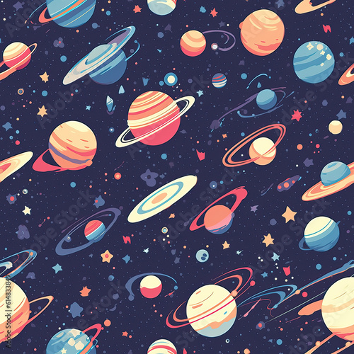 planet, seamless pattern, wrapping paper, childcare center, space exploration, solar system, starry, night, galaxy, universe, space, cosmic, science, astronomy, planet, wallpaper, star, sky, design, background, cosmos, pattern, seamless, graphic, illustration, moon, textile, cartoon, texture, doodle, art, drawing, saturn, print, abstract, generative, ai