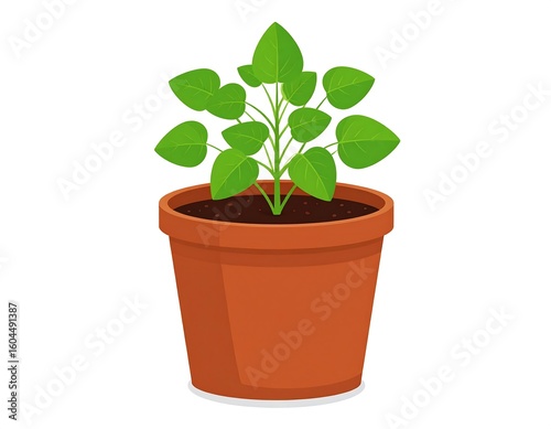 plant, pot, terracotta, green, leaf, stem, root, dirtied, growth, nature, fresh, life, potted, gardening, home, decor, illustration, flat, simple, colours, design, image, botanical, drawing, cartoon, indoor, small, healthy