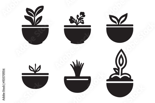 plant, pot, set, silhouette, vector, illustration, flower, leaf, nature, tree, growth, flowerpot, houseplant, garden, potted, spring, gardening, decoration, flora, grow, botany, leaf, house