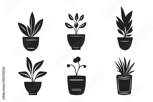 plant, pot, set, silhouette, vector, illustration, flower, leaf, nature, tree, growth, flowerpot, houseplant, garden, potted, spring, gardening, decoration, flora, grow, botany, leaf, house