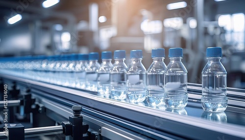 environment, closeup, transparent, pure, bottle, robotic, control, water, recycling, product, machinery, plant, machine, plastic, industrial, manufacture, drink, clean, technology, equipment, belt, business, factory, manufacturing, beverage, automation, bottling, bottle, industry, line, production, conveyer, automated, food, automatic, fresh, bottled, liquid, blue, filling