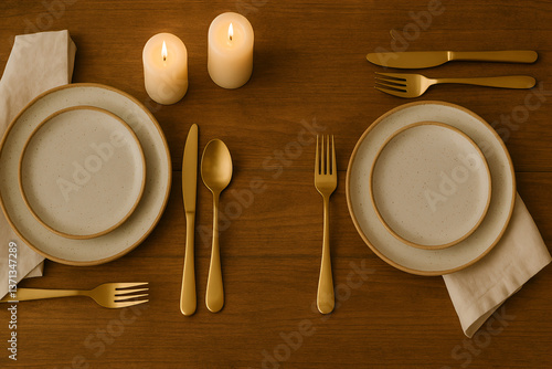 plate, table, empty, white, dinner, dish, food, fork, eatery, setting, meal, dining, knife, tableware, crockery, wood, clean, cutlery, wooden, kitchen, lunch, place, nobody, tablecloth, cup