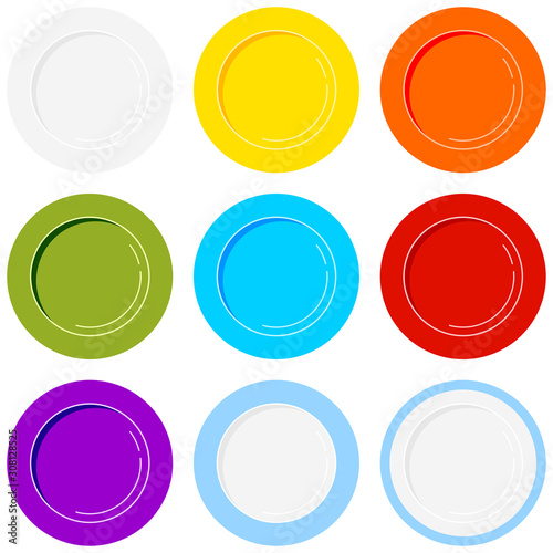 plate, dish, vector, empty, top, view, ceramic, border, isolated, template, frame, purple, orange, red, white, green, blue, yellow, flat, colours, blank, circle, food, simple, background, cartoon, clean, clip art, cooking, cookery, design, diet, dieting, dining, crockery, icon, illustration, kitchen, kitchen utensile, meal, porcelain, eatery, round, serving, shape, signs, tableware, utensil, set, ware
