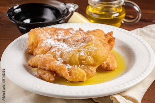 dough, fried, gold, plate, butter, melted, cinnamon, dessert, snack, sweet, pastry, sugar, generative, ai, indulgence, delicious, treat