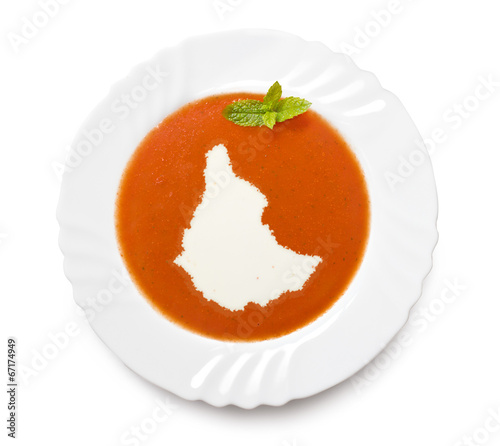 Plate tomato soup with cream in the shape of Ethiopia.(series)