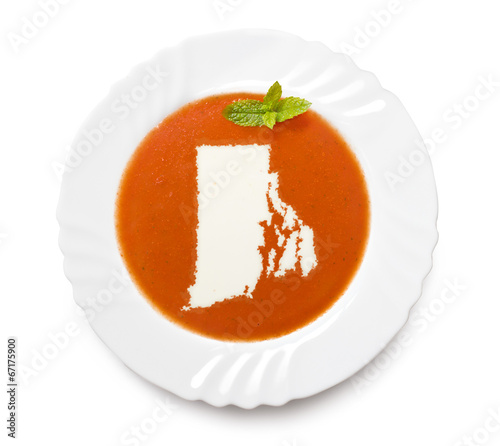 Plate tomato soup with cream in the shape of Rhode Island.(serie