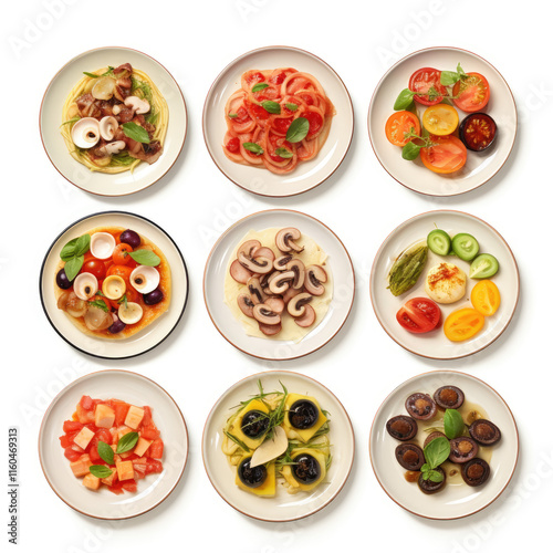 food, tomatoes, salad, meal, pizza, meat, plate, collage, cheese, vegetable, dinner, red, dish, healthy, fish, vegetable, soup, eatery, isolated, lunch, white, epicure, cookery, fresh, basil