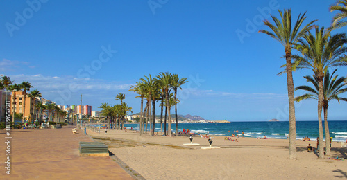 beach, spain, community, coast, mediterranean, boulevard, palm tree, alicante, village, house, house, colours, colours, summer