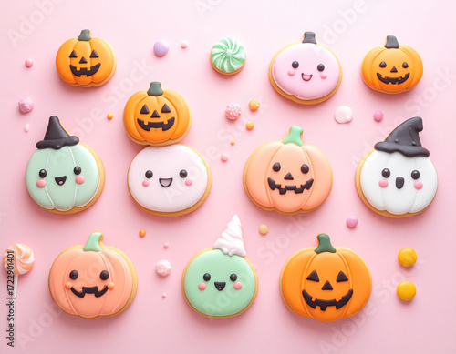 Playful Halloween Dessert Scene with Pink Pastel Aesthetic