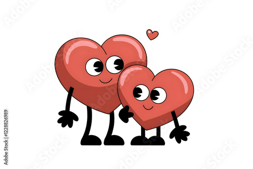 Playful Illustration of Two Heart-Shaped Characters Sharing a Loving Gaze with a Small Floating Heart
