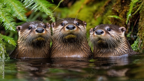 otter, water, animal, wildlife, nature, forest, fern, cute, playful, aquatic, family, group, head, mammal, furry, habitat, duck pond, looking, outdoors, natural, wild, environment, vibrant, serene, behaviour, fresh, lush, closeup, portrait, swimming, river, river bank, eye, texture