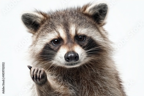 raccoon, animal, wildlife, nature, cute, furry, paw, closeup, portrait, mammal, wild animal, adorable, funny, playful, reaching, curious, friendly, animal portrait, white background