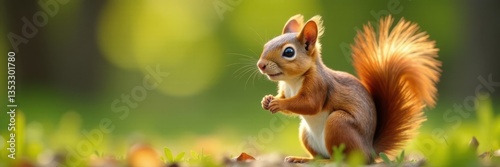Playful squirrel with bright eyes and fluffy tail , furry, cute animals