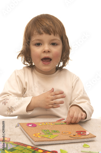 beautiful, children, childhood, children, cute, girl, girl, children, children, activity, concentration, educational, fun, game, hammer, isolated, joy, needle, play, playful, kindergartner, puzzle, white