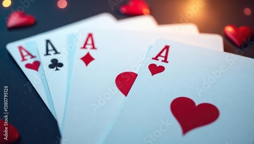 Playing cards arranged in a classic ace pattern , ace of spades, object, pattern