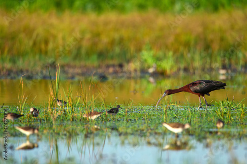 Plegadis falcinellus or Glossy ibis in natural habitat