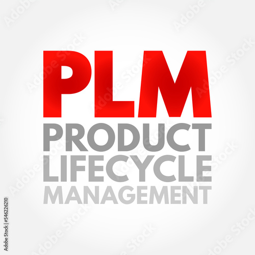 PLM Product Lifecycle Management - process of managing the entire lifecycle of a product from its inception through the engineering, design and manufacture, acronym text concept background
