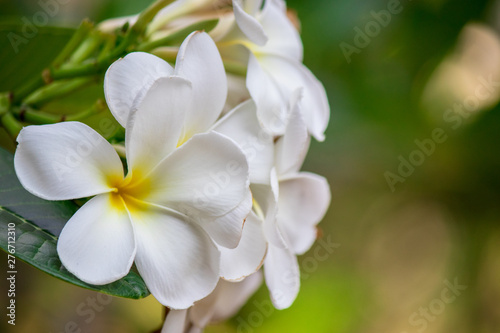 Plumeria frangipani Apocynaceae White flower green leaf