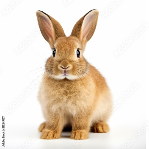 Plush bunny toy sitting alone on a pristine white background, Ai Generated