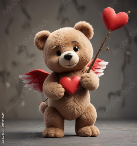 Plush cupid bear aims tiny arrow, heart-shaped wings, toy, adorable