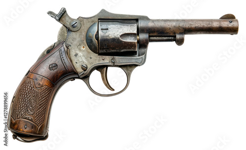 single object, studio shot, transparent, gun barrel, still life, closeup, conflict, isolated, revolver, security, violence, weaponry, cut-out, firearm, handgun, history, element, cannon, weapon, metal, photo, rust-eaten, white, hand, gun, old