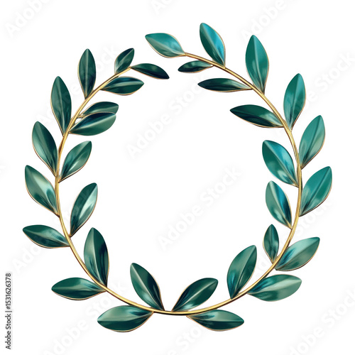 PNG 3D realistic dark green golden laurel wreath art illustration accessories.