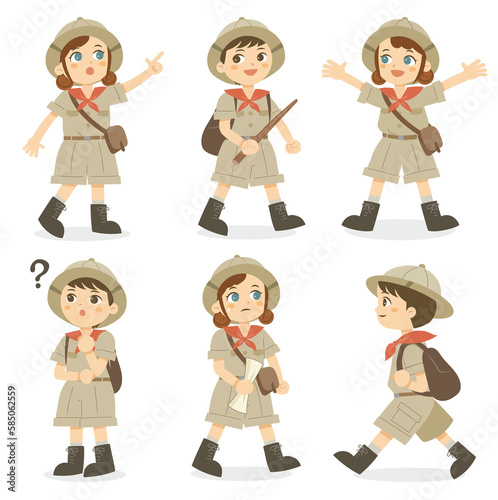 safari, children, children, adventure, exploration, set, rejoice, expression, boy, girl, children, manga, cartoon, animation, cartoon, character, design, sweet, illustration, boyscout, girl scout, person, people, quiz, outdoors, illustration, smile, fun, friends, people, woman, set, childhood