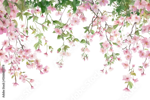 cherry blossom, floral pattern, illustration, transparent, botanical, branch, delicate, isolated, outdoors, panorama, blossom, cherry, design, floral, flower, nature, spring, border, green, photo, plant, theme, pink, art, top, flower