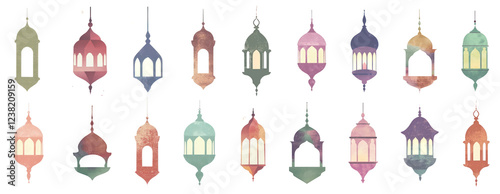 illustration, transparent, collection, decorative, silhouette, artistic, colourful, isolated, religion, design, element, hanging, lantern, ramadan, vintage, light, muslim, group, islam, mixed, eid, set, islamic