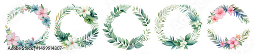 green leaf, illustration, transparent, collection, decorative, watercolor, beautiful, botanical, colourful, delicate, isolated, tropical, elegant, element, flower, pattern, chaplet, circle, design, floral, leaf, nature, green, mixed, plant, theme, white, pink, art, set, natural