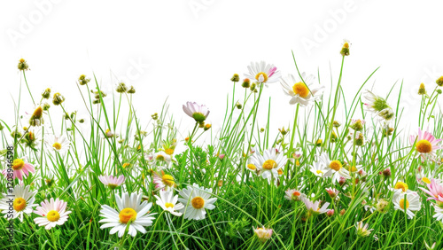 grass, border, daisy, flower, landscape, floral, nature, spring, green, plant, sky, photo, herb, transparent, outdoors, blossom, element, field, white, land, springtime, isolated, cut-out, botany, cosmos, growth, meadow, freshness, fragility, closeup, flower head, copy space, anemone, pasture, prairie, aster, plain, lawn, day, asteraceae