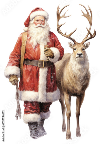 PNG Majestic santa with raindeer illustration accessories traditional.