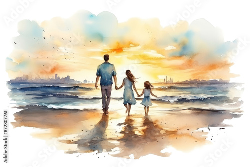 sea, holding hands, outdoors, sunset, beach, paint, person, watercolor, illustration, watercolor, drawing, family, nature, vignetting, summer, travel, adult, ocean, water, hand, love, sky, togetherness, holiday, transparent, silhouette, sunlight, element, father, human, earth, land, sand, bonding, eltern, happiness, character, vacation, creative, walking, day