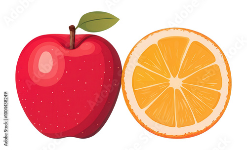 PNG Red apple and orange slice, white isolate background