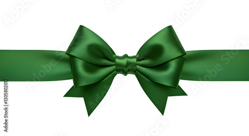 Png transparent background, A dark forest green satin ribbon bow sits centered on a plain white background