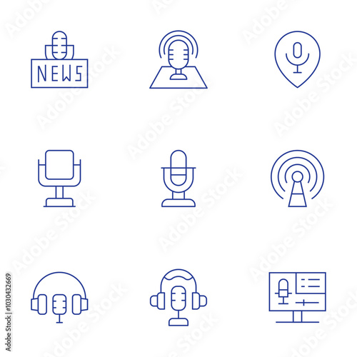 Podcast icons set. Thin Line style, editable stroke. news, place, placeholder, podcast