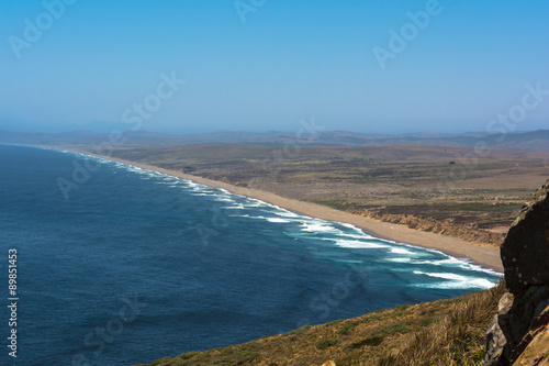 beach, sand, shoreline, ocean, pacific ocean, sea, water, foam, surf, wave, wildlife, tide, blue, cliff, vegetation, nature, coast, california, us