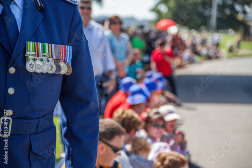 police, man, war, medal, standing, crowd, road, blue, closeup, uniform, march, ceremony, singleton, army, parade, remembrance, commemorate, soldier, official