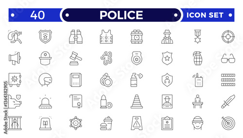 Police outline icon. Law and Judgement line icons Illustration. Justice, Court of law and Government outline icon set.