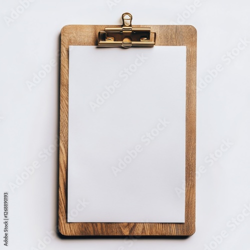 Polished wooden clipboard with blank sheet ready for notes and ideas in a bright workspace